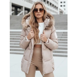 Dámská prošívaná zimní bunda s kapucí TY5506 béžová