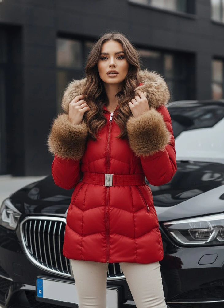 Model kombinuje vysokou funkčnost s ženským střihem do poloviny stehen. Kapuce a manžety lemované měkkou umělou kožešinou jsou odnímatelné, což umožňuje rychle zjednodušit vzhled bundy. Materiál se syntetickým zateplením se dobře osvědčuje v městských zimních podmínkách a pásek se sponou stabilizuje bundu při pohybu.