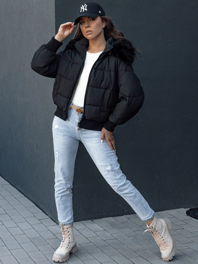 Dámská prošívaná zimní bunda s kožešinou COLDPACK černá FashionStreet TY4430