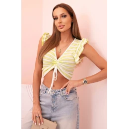 Dámská pruhovaná blůza s nařasením a volánkem zelená