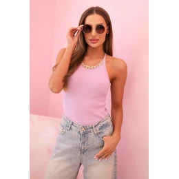 Top dámský bavlněný na ramínkách s ozdobným řetízkem fialový světlý