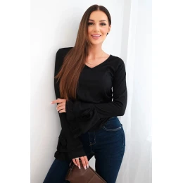 Pokud hledáte výjimečnou blůzu, která dodá vašim stylizacím ženské kouzlo – tento model je trefa do černého! Dámská blůza s hlubokým výstřihem do V a ozdobnými volánky na rukávech vypadá velmi stylově a jemně. Jemná viskóza s příměsí elastanu zajišťuje komfort nošení a perfektně se přizpůsobuje postavě.