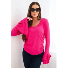 Dámská pruhovaná blůza s V výstřihem a volány na rukávech fuchsie