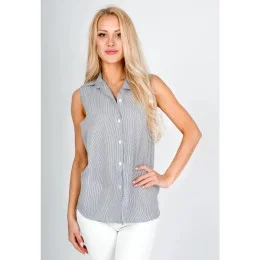 Tmavě modro-bílá dámská pruhovaná košile s krátkými rukávy (SSD2021D)