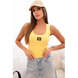 Dámská pruhovaná top s ramínky a ozdobnou nášivkou tmavě žlutá