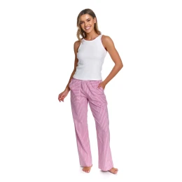Dámské pyžamo PM.7425 DR NAP je růžový, ženský komplet s jemnými proužky, který kombinuje klasiku s pohodlím moderního domácího oblečení. Hladká košilka na ramínka je vyrobena z měkkého žebrovaného úpletu (95 % bavlna, 5 % elastan), díky kterému se dokonale přizpůsobí siluetě a zajistí pohodlí po celou noc. Jemně zakončený výstřih podtrhuje estetický a rafinovaný charakter modelu.
