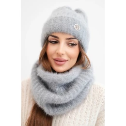 Sada skládající se z čepice a nákrčníku, vyrobená z nadýchané a měkké pleteniny s příjemnou strukturou. Materiál je elastický a dobře se přizpůsobuje hlavě a krku, poskytující komfort a teplo v chladných dnech.