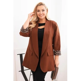 Dámská sako Plus Size s podšívkou v leopardím vzoru čokoládová