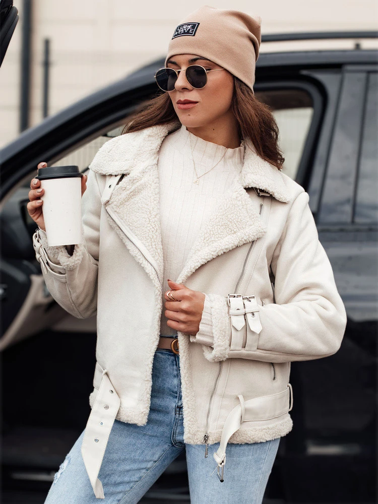 Dámská semišová bunda LEVERINO s ovčí kůží bílá FashionStreet TY4732