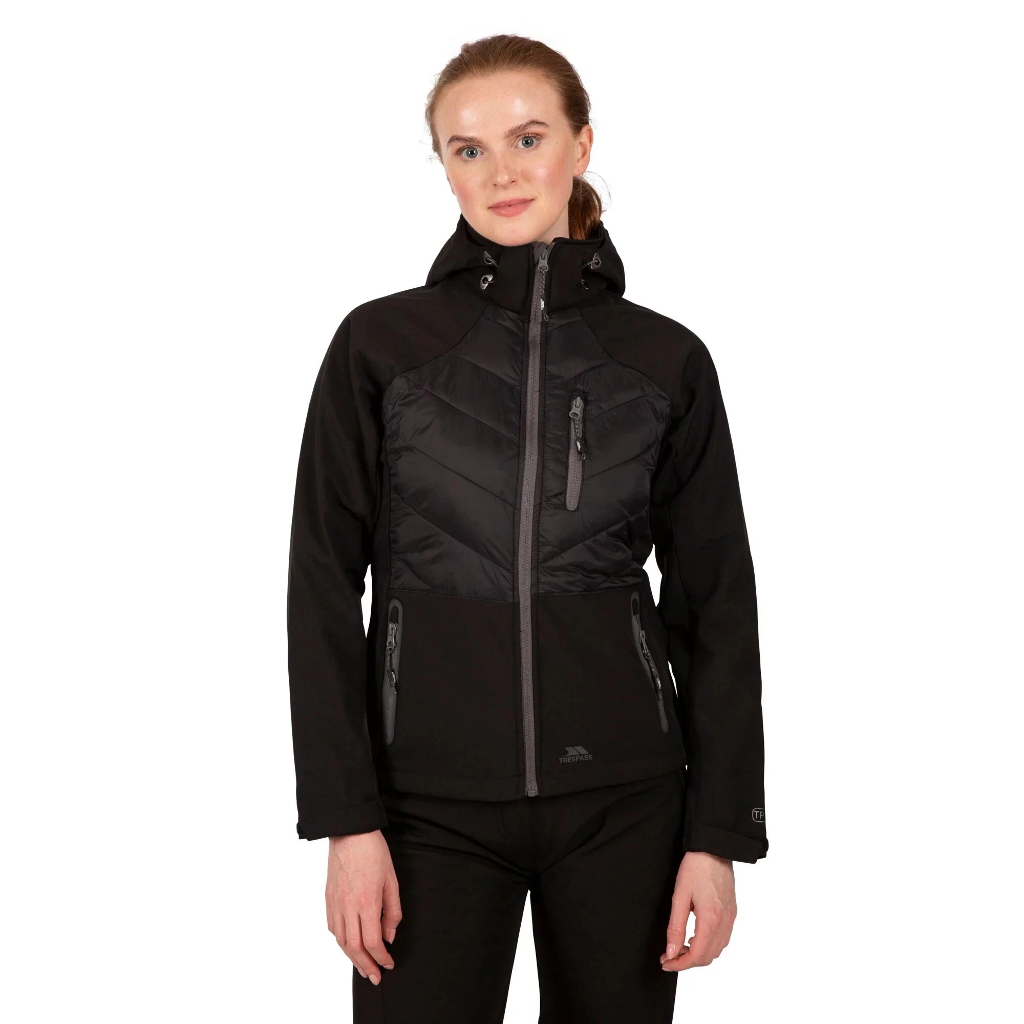 Dámská softshellová bunda Trespass Elvira s kapucí vás skvěle ochrání proti všem živlům. Větru a vodě odolný materiál o parametrech nepromokavosti a prodyšnosti 8000/3000 je skvělou volbou do deštivého počasí. Na bundě oceníte praktické prvky jako je nastavitelná kapuce, kapsy uzavíratelné zipy, nastavitelné manžety rukávů či hlavní zip s ochranou brady proti poškrábání. To vše v elegantním provedení.