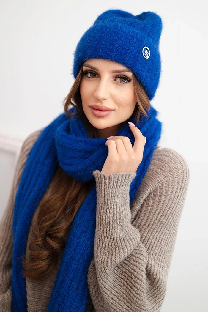 Dámská souprava čepice a dlouhý šál z měkké příze chabrová