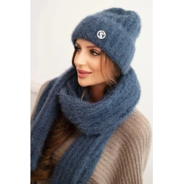Dámská souprava čepice a dlouhý šátek z měkké příze jeansový