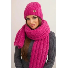 Dámská souprava čepice a šály s proužky s ozdobou fuchsie