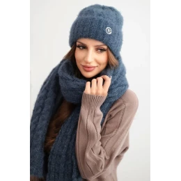 Dámská souprava čepice a šály s žebrovaným vzorem s ozdobou jeansový