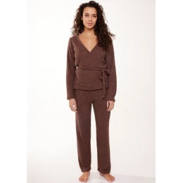 Dámská souprava značky Lingadore. Souprava obsahuje kabátek, který je zavinovací kolem obvodu těla. Výstřih kabátku je do "V", rukávy jsou ukončené volně. Kalhoty jsou volného rovného střihu. V pase jsou kalhoty do širší obšité gumy. Celá souprava je příjemné hřejivá a ideální do chladných dnů.