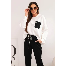 Dámská souprava máslová s kontrastní kapsou černý