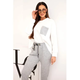 Dámská souprava máslová s kontrastní kapsou šedá