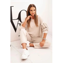 Dámská souprava máslová s třásněmi na rukávech béžová