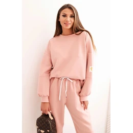 Dámská souprava máslová s volnou mikinou a kalhotami s nápisem LOVE tmavě pudrově růžová