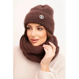Dámská souprava s čepicí a šálou z měkké pleteniny hnědá