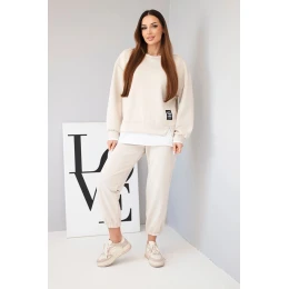 Dámská souprava s máslovou mikinou a volnými tepláky béžový