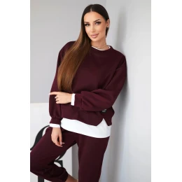 Dámská souprava s máslovou volnou mikinou a tepláky švestková