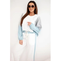 Dámská souprava s volnou mikinou a kalhotami s širokými nohavicemi mátová