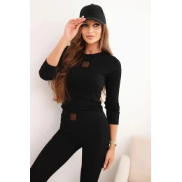 Tento dámský bavlněný komplet s dlouhým rukávem a legínami je ideální volba na každodenní nošení – pohodlný, přiléhavý a vyrobený z elastického, žebrovaného úpletu. Skládá se z dlouhé, přiléhavé blůzy s kulatým výstřihem a legín s vysokým pasem, které krásně podtrhují siluetu.