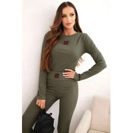 Dámská souprava z bavlny s dlouhým rukávem a legínami khaki