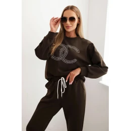 Dámská souprava z viskózy s ozdobným motivem a kalhotami hnědý
