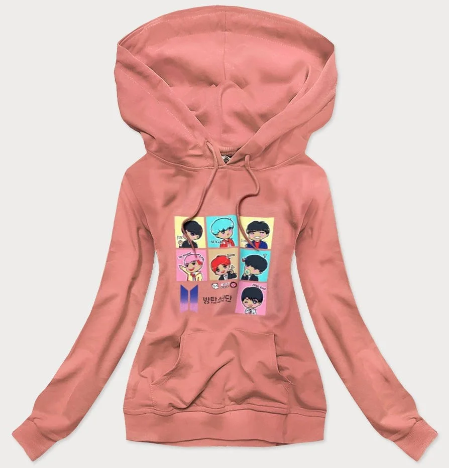 Dámská sportovní mikina v broskvové barvě s potiskem (N7283)