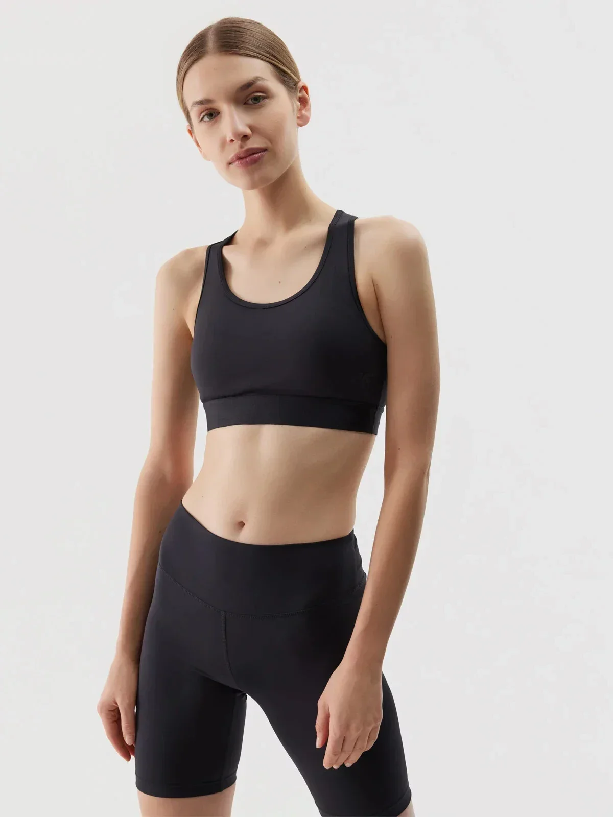 Hlavním cílem oblečení ze sportovní řady je poskytnout pohodlí a podporu při jakémkoli typu tréninku různé úrovně a intenzity. Díky rychleschnoucím, elastickým materiálům a pohodlnému střihu podprsenka zajistí plnou volnost pohybu a umožní maximální soustředění a pohodlí během cvičení. Má přizpůsobený střih slim, který přiléhá k tělu, a nízkou podporu, která se hodí pro méně intenzivní cvičení, jako je jóga, pilates nebo každodenní aktivity.