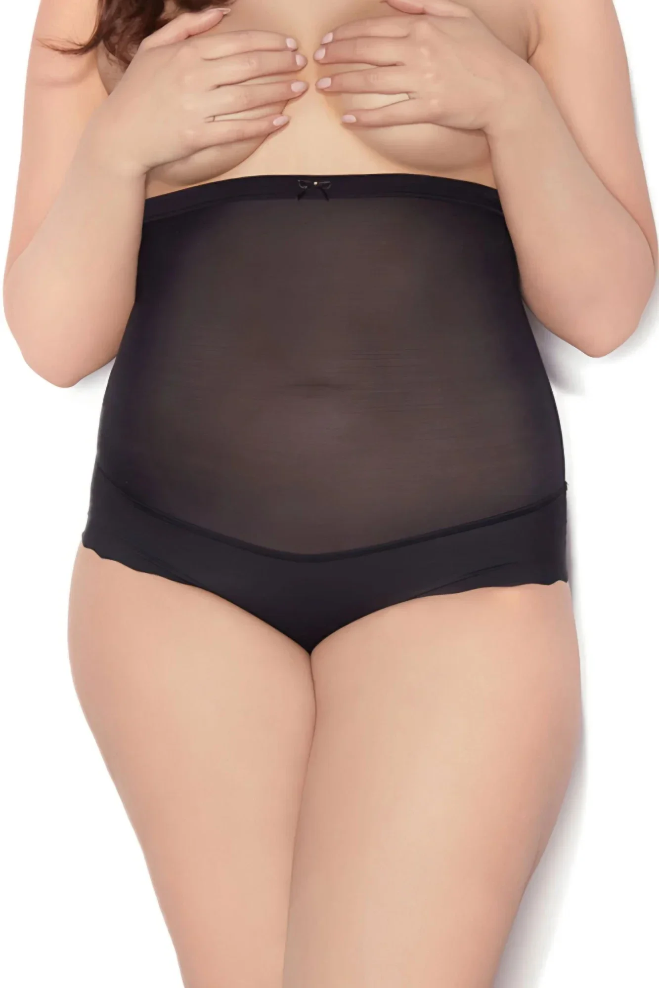 Dámská stahovací tanga Glam string black MITEX - černá barva - s vysokým pasem - tvarují břicho, pas a linii boků - pas se silikonem - přední část zdobená mašličkou se zlatou perličkou