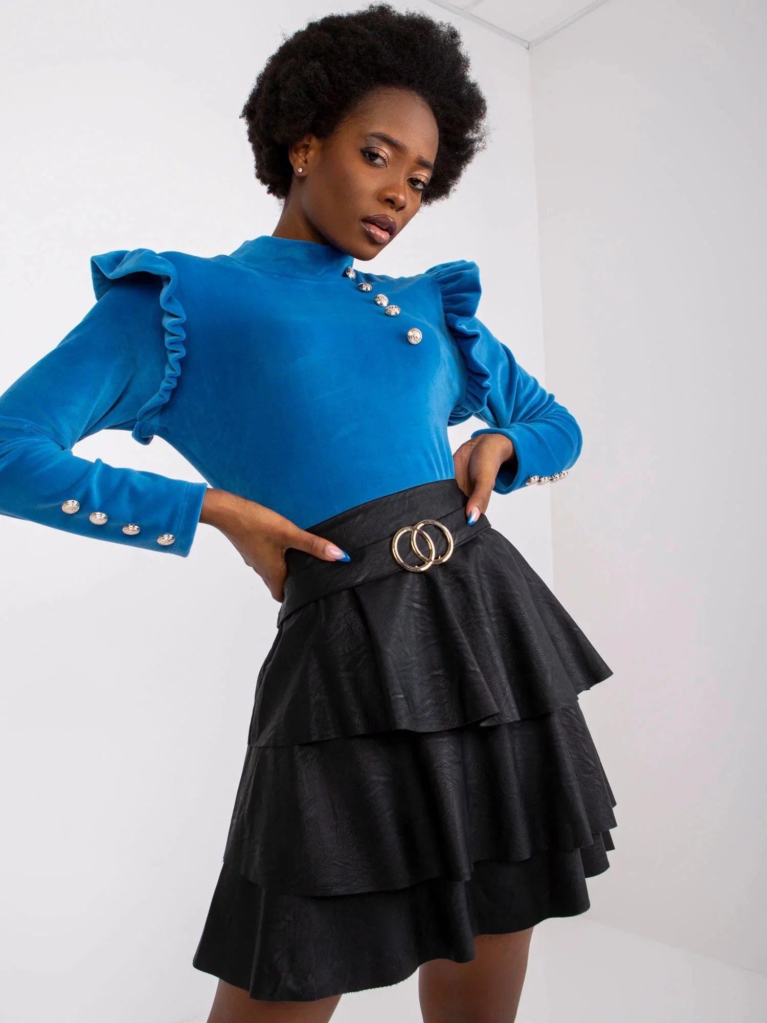 Modelka má na sobě jednu velikost. Rozměry modelky: výška 162 cm, poprsí 80 cm, pas 63 cm, boky 80 cm.