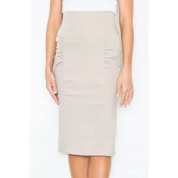 Dámská elegantní sukně M044 FIGL s vyšším pasem a nařasením na bocích. Délka sukně je pod koleny. Podšívka je 100% polyester.