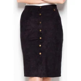 Módní tužková sukně v midi délce ze semiše. Charakteristickým znakem sukně je řada ozdobných knoflíků, které se táhnou po celé délce sukně.