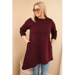 Dámská sukni Plus Size z viskózy s volným střihem a dlouhým rukávem švestková