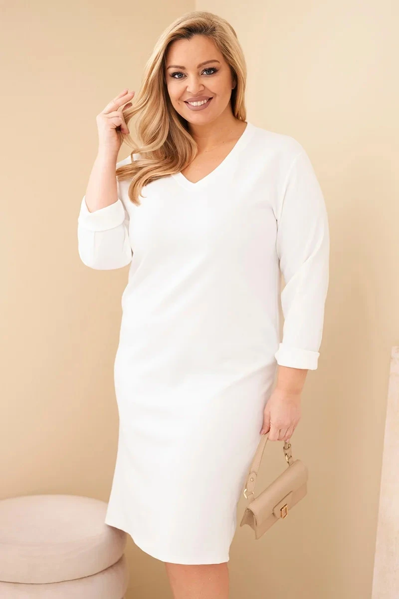 2. Dámská suknička Plus Size máslová s V výstřihem a rukávem bílá