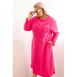 Dámská plus size šaty s bavlněnou výšivkou růžová