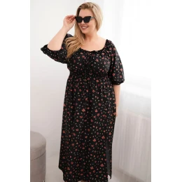 Dámská suknička Plus Size s dekoltem na šňůrky a elastickým pasem černá