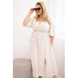 Dámská sukýnka Plus Size s dekoltem na tkaničky a elastickým pasem ecru