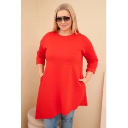 Dámská sukýnka Plus Size z viskózy s volným střihem a dlouhým rukávem červená