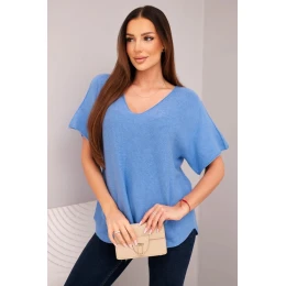 Dámská svetr s krátkým rukávem a výstřihem do V džínová