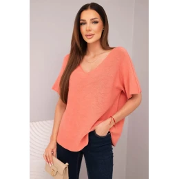 Dámská svetr s krátkým rukávem a výstřihem do V meruňková