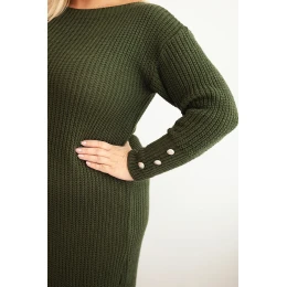 2. Dámská svetrková šaty Plus Size s mohair oversize s kapsou khaki