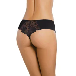 Dámská tanga 134 Gabidar - černá barva - na bocích mají jemný tyl s květovanou výšivkou - romantický design