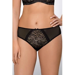 Dámská tanga 1396 Crystal black AVA - černá barva - vpředu vsadky z krajky a síťoviny - zadní díl je z hladké látky - zakončené pružnou pogumovanou krajkou - ozdobená půvabnou saténovou mašličkou