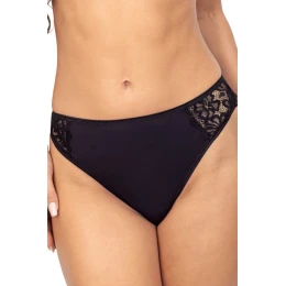 Smyslná dámská krajková tanga jsou spojením elegance a pohodlí na nejvyšší úrovni. Jsou vyrobena z měkké viskózy s elastanem, dokonale přiléhají k tělu a zdůrazňují ženskou siluetu. Přední část kalhotek je jemně nařasená, po stranách zdobená jemnou krajkou, zatímco zadní část je celá z nápadné květinové krajky. Díky plochým švům a elastickému materiálu se tanga nerýsují pod oblečením, což zajišťuje pohodlí po celý den. Model je k dispozici v klasických barvách: černé, červené a bílé. Vyrobeno v Polsku s důrazem na každý detail.