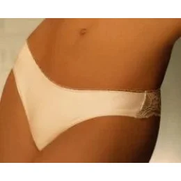 Luxusní bezešvé dámské tanga, vpředu hladké a vzadu z nádherné krajky ozdobené jemnou mašličkou.