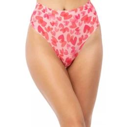 Dámská tanga Love Vibes string maxi JULIMEX - růžová barva - z mikrovlákna - vyšší střih - se vzorem srdíček - technologie INVISIBLE LINE na ultratenké okraje